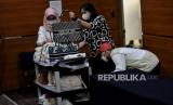 Petugas merapikan barang sitaan saat konferensi pers pengumuman penahanan tersangka di Gedung Merah Putih KPK, Jakarta, Senin (3/4/2023). KPK resmi melakukan penahanan terhadap tersangka Rafael Alun Trisambodo (RAT) dalam kasus dugaan tindak pidana korupsi dengan menggunakan jabatannya atas penerimaan gratifikasi dari beberapa wajib pajak terkait pengkondisian berbagai temuan pemeriksaan perpajakan di Ditjen Pajak Kemenkeu tahun 2011 hingga 2023. Dalam konferensi pers tersebut, KPK juga berhasil menyita sejumlah tas mewah, perhiasan dan sejumlah mata uang dollar Amerika, dollar Singapura dan mata uang euro senilai Rp32,2 miliar saat melakukan penggeledahan di kediaman RAT. Oleh karena itu, untuk kepentingan penyidikan, KPK melakukan penahanan terhadap RAT selama 20 hari pertama dari tanggal 3-22 April 2023 mendatang di Rutan KPK Gedung Merah Putih. (FOTO : Republika/Thoudy Badai)