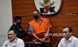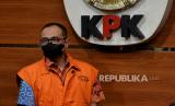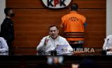 Eks Pejabat Ditjen Pajak Kementerian Keuangan, Rafael Alun Trisambodo mengenakan rompi tahanan saat dihadirkan dalam konferensi pers pengumuman penahanan tersangka di Gedung Merah Putih KPK, Jakarta, Senin (3/4/2023). KPK resmi melakukan penahanan terhadap tersangka Rafael Alun Trisambodo (RAT) dalam kasus dugaan tindak pidana korupsi dengan menggunakan jabatannya atas penerimaan gratifikasi dari beberapa wajib pajak terkait pengkondisian berbagai temuan pemeriksaan perpajakan di Ditjen Pajak Kemenkeu tahun 2011 hingga 2023. Dalam konferensi pers tersebut, KPK juga berhasil menyita sejumlah tas mewah, perhiasan dan sejumlah mata uang dollar Amerika, dollar Singapura dan mata uang euro senilai Rp32,2 miliar saat melakukan penggeledahan di kediaman RAT. Oleh karena itu, untuk kepentingan penyidikan, KPK melakukan penahanan terhadap RAT selama 20 hari pertama dari tanggal 3-22 April 2023 mendatang di Rutan KPK Gedung Merah Putih. (FOTO : Republika/Thoudy Badai)