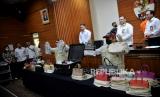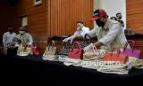 Ketua KPK Firli Bahuri menyampaikan keterangan pers pengumuman penahanan tersangka di Gedung Merah Putih KPK, Jakarta, Senin (3/4/2023). KPK resmi melakukan penahanan terhadap tersangka Rafael Alun Trisambodo (RAT) dalam kasus dugaan tindak pidana korupsi dengan menggunakan jabatannya atas penerimaan gratifikasi dari beberapa wajib pajak terkait pengkondisian berbagai temuan pemeriksaan perpajakan di Ditjen Pajak Kemenkeu tahun 2011 hingga 2023. Dalam konferensi pers tersebut, KPK juga berhasil menyita sejumlah tas mewah, perhiasan dan sejumlah mata uang dollar Amerika, dollar Singapura dan mata uang euro senilai Rp32,2 miliar saat melakukan penggeledahan di kediaman RAT. Oleh karena itu, untuk kepentingan penyidikan, KPK melakukan penahanan terhadap RAT selama 20 hari pertama dari tanggal 3-22 April 2023 mendatang di Rutan KPK Gedung Merah Putih. (FOTO : Republika/Thoudy Badai)