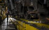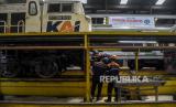 Petugas melakukan perawatan lokomotif kereta api di Depo Lokomotif PT KAI Daop 2 Bandung, Kota Bandung, Jawa Barat, Selasa (4/4/2023). PT KAI Daop 2 Bandung menyiapkan 23 lokomotif yang akan digunakan untuk 572 perjalanan selama angkutan mudik lebaran mulai dari 15 April-3 Mei 2023. (FOTO : ABDAN SYAKURA/REPUBLIKA)