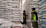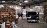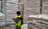 Satpol PP memeriksa tumpukan gula dan gandum saat sidak stok sembako di distributor sembako Arista, Sleman, Yogyakarta, Selasa (4/4/2023). Bupati Sleman, Kustini melakukan inspeksi ke gudang distributor sembako di Sleman untuk menjamin ketersediaan jelang Lebaran Idul Fitri 2023. Beberapa komoditas yang dipantau diantaranya beras, minyak, daging ayam ras, telur ayam ras, gula, dan bawang. (FOTO : Republika/Wihdan Hidayat)