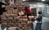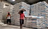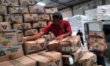 Pekerja mengangkut sembako di distributor sembako Arista, Sleman, Yogyakarta, Selasa (4/4/2023). Bupati Sleman, Kustini melakukan inspeksi ke gudang distributor sembako di Sleman untuk menjamin ketersediaan jelang Lebaran Idul Fitri 2023. Beberapa komoditas yang dipantau diantaranya beras, minyak, daging ayam ras, telur ayam ras, gula, dan bawang. (FOTO : Republika/Wihdan Hidayat)