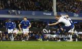 Harry Kane dari Tottenham Hotspur mencetak gol pertama mereka dari titik penalti saat Everton vs Tottenham Hotspur salami Liga Primer Inggris di Goodison Park pada Selasa (4/4/2023) dini hari WIB (FOTO : X03805)