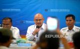 Kepala Kanwil Kemenkumham DIY, Agung Rektono Seto menyampaikan paparan penangkapan warga negara asing (WNA) saat konferensi pers di Kantor Imigrasi Kelas I TPI Yogyakarta, Rabu (5/4/2023). WNA asal Hungaria, Robert (33) ditangkap oleh petugas Imigrasi Yogyakarta di Siyono, Gunungkidul karena meresahkan masyarakat. Selama di Siyono, Robert tidur di tenda serta gedung serbaguna, dan mengambil barang dagangan warga tanpa membayar. Saat ini Robert ditahan oleh Imigrasi Yogyakarta untuk menunggu proses deportasi. (FOTO : Republika/Wihdan Hidayat)