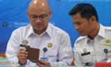 Kepala Kanwil Kemenkumham DIY, Agung Rektono Seto (kiri) bersama Kepala Kantor Imigrasi Yogyakarta Najarudin Safaat melihat paspor warga negara asing (WNA) saat konferensi pers di Kantor Imigrasi Kelas I TPI Yogyakarta, Rabu (5/4/2023). WNA asal Hungaria, Robert (33) ditangkap oleh petugas Imigrasi Yogyakarta di Siyono, Gunungkidul karena meresahkan masyarakat. Selama di Siyono, Robert tidur di tenda serta gedung serbaguna, dan mengambil barang dagangan warga tanpa membayar. Saat ini Robert ditahan oleh Imigrasi Yogyakarta untuk menunggu proses deportasi. (FOTO : Republika/Wihdan Hidayat)