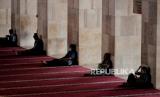 Jamaah beristirahat saat menunggu waktu berbuka puasa di Masjid Istiqlal, Jakarta, Rabu (5/4/2023). Saat bulan Ramadhan, umat muslim dianjurkan untuk memperbanyak beribadah seperti membaca Alquran, melaksanakan shalat sunnah, dan melakukan sedekah. Masjid Istiqlal menjadi salah satu masjid di Jakarta yang menyediakan beragam program bulan Ramadhan seperti kajian, buka puasa bersama, tarawih, posko pembayaran zakat dan beragam acara keagamaan lainnya yang dapat dimanfaatkan jamaah untuk meningkatkan kualitas ibadah di Bulan Suci Ramadhan. (FOTO : Republika/Thoudy Badai)