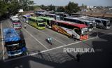 Sejumlah bus terparkir di Terminal Cicaheum, Kota Bandung, Jawa Barat, Rabu (5/4/2023). Menurut Kepala Terminal Cicaheum Roni Hermanto, Terminal Cicaheum menyiapkan 165 unit bus, dengan rincian 106 unit bus antar kota antar provinsi dan 59 unit bus antar kota dalam provinsi untuk melayani masyarakat yang akan mudik lebaran. (FOTO : ABDAN SYAKURA/REPUBLIKA)