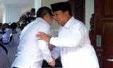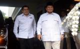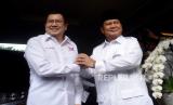 REPUBLIKA.CO.ID, JAKARTA -- Ketua Umum Partai Gerindra Prabowo Subianto bersama Ketua Umum Partai Perindo Hary Tanoesoedibjo sebelum melakukan pertemuan di Jakarta, Rabu (5/4/2023).