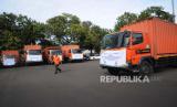 Truk membawa beras terparkir saat pelepasan Penyaluran Program Bantuan Pangan di Komplek Pergudangan Bulog Kelapa Gading, Jakarta, Kamis (6/4/2023). Perum Bulog resmi melepaskan penyaluran Cadangan Beras Pemerintah (CBP) untuk bantuan pangan sebanyak 640.590 ton untuk 21,3 juta keluarga penerima manfaat (KPM) yang tercatat dalam data Kementerian Sosial.Bantuan sosial (bansos) ini untuk mengurangi beban pengeluaran keluarga Penerima Manfaat dalam pemenuhan pangan terutama saat menghadapi Ramadhan dan persiapan Idul Fitri 2023. (FOTO : Tahta Aidilla/Republika)