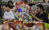 Pekerja menyelesaikan pembuatan parsel di salah satu toko parsel di Jalan Karapitan, Lengkong, Kota Bandung, Jawa Barat, Jumat (7/4/2023). Pengusaha parsel menyatakan, pada Ramadhan tahun ini, produksi parsel untuk bingkisan lebaran mengalami peningkatan hingga 30 persen atau dapat memproduksi sebanyak 500 parsel per hari dibandingkan tahun sebelumnya. Parsel tersebut dijual dengan harga Rp70 ribu hingga Rp5 juta dan dipasarkan ke berbagai daerah di Indonesia. (FOTO : ABDAN SYAKURA/REPUBLIKA)