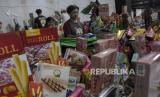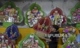 Pekerja menata parsel yang telah siap jual di salah satu toko parsel di Jalan Karapitan, Lengkong, Kota Bandung, Jawa Barat, Jumat (7/4/2023). Pengusaha parsel menyatakan, pada Ramadhan tahun ini, produksi parsel untuk bingkisan lebaran mengalami peningkatan hingga 30 persen atau dapat memproduksi sebanyak 500 parsel per hari dibandingkan tahun sebelumnya. Parsel tersebut dijual dengan harga Rp70 ribu hingga Rp5 juta dan dipasarkan ke berbagai daerah di Indonesia. (FOTO : ABDAN SYAKURA/REPUBLIKA)