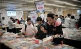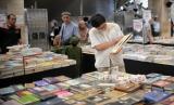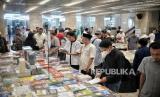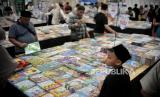 Pengunjung mengamati buku saat acara Bazar buku Republika Ramadhan Festival 2023 di area aula Al-Fatah Masjid Istiqlal, Jakarta, Jumat (7/4/2023). Republika Ramadhan Festival 2023 bertajuk Gaya Hidup Halal untuk Kebangkitan Ekonomi dengan pembahasan seputar ekonomi syariah dan gaya hidup halal dengan harapan dapat menggerakan perekonomian melalui ekonomi syariah. Acara tersebut menghadirkan serangkaian kegiatan seperti bazar, talkshow, kajian keislaman, santunan hingga hiburan tersebut berlangsung hingga Sabtu (15/4/2023). (FOTO : Republika/Thoudy Badai)
