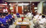 Ketua Umum Partai Gerindra Prabowo Subianto berjabat tangan dengan Ketua Umum PAN Zulkifli Hasan di kediaman Prabowo, Jalan Kertanegara, Jakarta, Sabtu (8/4/2023). (FOTO : dok republika)