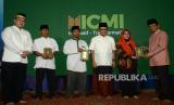 Imam Besar Masjid Istiqlal KH. Nasaruddin Umar (kanan) memberikan Alquran disaksikan Ketua Umum ICMI Arif Satria (kiri) dan Ketua Umum Yayasan Muslim Sinar Mas, Saleh Husein (tiga kanan) dalam acara Republika Ramadhan Festival Semarak Ramadhan ICMI di Masjid Istiqlal, Jakata, Sabtu (8/4/2023). Pada kesempatan tersebut Republika bekerja sama dengan ICMI dan Masjid Istiqlal mengadakan beberapa acara antara lain Santunan pengajar dan hafidz quran dari staf ICMI,Pemberian penghargaan Nabawi award, Pemberian wakaf quran kepada organisasi masyarakat, masjid dan lembaga pendidikan serta Buka puasa bersama 5000 jamaah Masjid Istiqlal dan anggota ICMI. (FOTO : Republika/Prayogi)