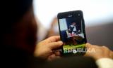 Jamaah mengambil gabar Qori Senior Juara Nasional dan Internasional KH Muammar ZA  saat membacakan Tilawatil Quran dalam peringatan malam Nuzurul Quran di Masjid Istiqlal, Jakarta, Sabtu (8/4/2023). ICMI berkerjasama dengan  Masjid Istiqlal menyelenggarakan peringatan malam Nuzurul Quran dan berharap memonetum Nuzurul Quran ini menjadikan sebagai Quran sumber inspirasi. (FOTO : Republika/Prayogi)