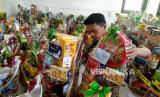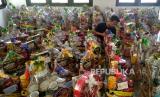 Pekerja merapihkan persediaan parsel Lebaran Idul Fitri di Jogja Parcel, Yogyakarta, Ahad (9/4/2023). Untuk menghadapi Lebaran Idul Fitri 1444H Jogja Parcel menyiapkan 1.400 buah parsel. Harga jual parsel mulai Rp 150 ribu hingga Rp 1,5 juta tergantung ukuran dan isi parsel. Pembeli parsel selain dari Yogyakarta juga dari luar Jawa serta Luar Negeri yang mengirimkan parsel untuk keluarga serta rekan bisnis. (FOTO : Republika/Wihdan Hidayat)
