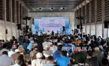 Suasana peserta saat sesi talkshow Republika Ramadhan Festival di Masjid Istiqlal, Jakarta, Ahad (9/4/2023). Talkshow tersebut mengangkat tema Halal Enterpreneurship, Concept and Opportunities yang membahas tentang kondisi industri halal di Indonesia dan langkah BPJPH dalam menjangkau masyarakat untuk memahami sertifikasi halal. Selain itu, Acara tersebut menghadirkan serangkaian kegiatan seperti bazar buku, kajian keislaman, santunan hingga hiburan dan berlangsung hingga Sabtu (15/4/2023). (FOTO : Republika/Thoudy Badai)