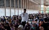 Peserta mengajukan pertanyaan kepada pembicara saat sesi talkshow Republika Ramadhan Festival di Masjid Istiqlal, Jakarta, Ahad (9/4/2023). Talkshow tersebut mengangkat tema Halal Enterpreneurship, Concept and Opportunities yang membahas tentang kondisi industri halal di Indonesia dan langkah BPJPH dalam menjangkau masyarakat untuk memahami sertifikasi halal. Selain itu, Acara tersebut menghadirkan serangkaian kegiatan seperti bazar buku, kajian keislaman, santunan hingga hiburan dan berlangsung hingga Sabtu (15/4/2023). (FOTO : Republika/Thoudy Badai)