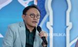 Pemimpin Redaksi Republika, Irfan Junaidi menyampaikan sambutan saat acara talkshow Republika Ramadhan Festival di Masjid Istiqlal, Jakarta, Ahad (9/4/2023). Talkshow tersebut mengangkat tema Halal Enterpreneurship, Concept and Opportunities yang membahas tentang kondisi industri halal di Indonesia dan langkah BPJPH dalam menjangkau masyarakat untuk memahami sertifikasi halal. Selain itu, Acara tersebut menghadirkan serangkaian kegiatan seperti bazar buku, kajian keislaman, santunan hingga hiburan dan berlangsung hingga Sabtu (15/4/2023). (FOTO : Republika/Thoudy Badai)