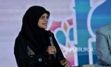 Owner Tuneeca, Samira M Bafagih saat sesi talkshow Republika Ramadhan Festival di Masjid Istiqlal, Jakarta, Ahad (9/4/2023). Talkshow tersebut mengangkat tema Halal Enterpreneurship, Concept and Opportunities yang membahas tentang kondisi industri halal di Indonesia dan langkah BPJPH dalam menjangkau masyarakat untuk memahami sertifikasi halal. Selain itu, Acara tersebut menghadirkan serangkaian kegiatan seperti bazar buku, kajian keislaman, santunan hingga hiburan dan berlangsung hingga Sabtu (15/4/2023). (FOTO : Republika/Thoudy Badai)