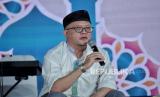 Kepala Badan Penyelenggara Jaminan Produk Halal (BPJPH), M Aqil Irham saat sesi talkshow Republika Ramadhan Festival di Masjid Istiqlal, Jakarta, Ahad (9/4/2023). Talkshow tersebut mengangkat tema Halal Enterpreneurship, Concept and Opportunities yang membahas tentang kondisi industri halal di Indonesia dan langkah BPJPH dalam menjangkau masyarakat untuk memahami sertifikasi halal. Selain itu, Acara tersebut menghadirkan serangkaian kegiatan seperti bazar buku, kajian keislaman, santunan hingga hiburan dan berlangsung hingga Sabtu (15/4/2023). (FOTO : Republika/Thoudy Badai)