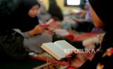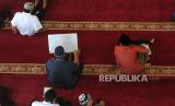 REPUBLIKA.CO.ID, PALEMNBANG -- Peserta membaca Al Quran pada gelaran 8 Jam 8 Juz di Masjid Al Raiyah Palembang, Sumsel, Ahad (9/4/2023).