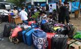 REPUBLIKA.CO.ID, JOMBANG -- Santri Pondok Pesantren Tebuireng menunggu waktu pemberangkatan saat mudik bareng di parkiran makam Gus Dur Jombang, Jawa Timur, Senin (10/4/2023).