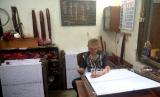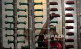 Pekerja memeriksa kain sarung goyor sebelum dijahit di rumah produksi sarung goyor cap Botol Terbang, Magelang, Jawa Tengah, Senin (10/4/2023). (FOTO : Republika/Wihdan Hidayat)
