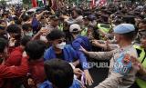 REPUBLIKA.CO.ID,BANYUMAS -- Elemen mahasiswa dari sejumlah perguruan tinggi melakukan aksi unjuk rasa menolak pengesahan UU Cipta Kerja di depan Pendopo Kabupaten Banyumas, Purwokerto, Banyumas, Jawa Tengah, Senin (10/4/2023).