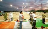 Sampai pukul 7.34 WIB pagi, Selasa (11/4/2023) ahli waris warga Jatikarya masih tetap bertahan menduduki tanahnya yang digunakan tol Cibitung-Cimanggis (Cimacis). (FOTO : Republika/Ali Yusuf)