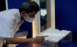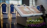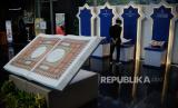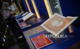 REPUBLIKA.CO.ID, JAKARTA -- Pengunjung melihat mushaf Alquran yang dipamerkan di kantor Kementerian Agama, Jakarta, Selasa (11/4/2023).