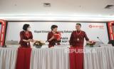 Direktur Utama Bank OCBC NISP Parwati Surjaudaja (tengah) berbincang dengan Direktur Bank OCBC NISP Hartati (kiri), Direktur Bank OCBC NISP, Bapak Martin Widjaja (kanan) saat Paparan Publik Rapat Umum Pemegang Saham Tahunan (RUPST) Bank OCBC NISP 2023 di Jakarta, Selasa (11/4/2023). (FOTO : Republika/ Tahta Aidilla)