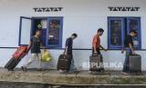 REPUBLIKA.CO.ID, CIAMIS -- Sejumlah santri membawa koper di Pondok Pesantren Darussalam, Kabupaten Ciamis, Jawa Barat, Selasa (11/4/2023).