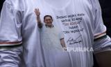 Simpatisan mengenakan kaus bergambar Anas Urbaningrum di halaman Lapas Kelas 1 Sukamiskin, Jalan A.H. Nasution, Arcamanik, Kota Bandung, Selasa (11/4/2023). Mantan Ketua Umum Partai Demokrat Anas Urbaningrum resmi bebas bersyarat dari Lapas Kelas 1 Sukamiskin usai menjalani hukuman penjara sejak tahun 2014 lalu. Anas Urbaningrum menjalani program cuti menjelang bebas (CMB) dengan tetap wajib lapor ke Balai Pemasyarakatan (Bapas) Kelas 1 Bandung. (FOTO : ABDAN SYAKURA/REPUBLIKA)