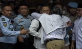 Mantan Ketua Umum Partai Demokrat Anas Urbaningrum dipeluk kerabat usai bebas dari Lapas Kelas 1 Sukamiskin, Jalan A.H. Nasution, Arcamanik, Kota Bandung, Selasa (11/4/2023). (FOTO : ABDAN SYAKURA/REPUBLIKA)