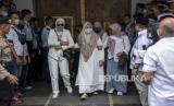 Sejumlah keluarga dan kerabat dari Anas Urbaningrum berada di halaman Lapas Kelas 1 Sukamiskin, Jalan A.H. Nasution, Arcamanik, Kota Bandung, Selasa (11/4/2023). (FOTO : ABDAN SYAKURA/REPUBLIKA)