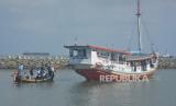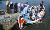 Sejumlah warga menaiki kapal motor saat mudik awal di Pelabuhan Kalbut, Mangaran, Situbondo, Jawa Timur, Selasa (11/4/2023). Warga Pulau Sapudi Sumenep Madura yang belajar di pondok Situbondo, bekerja di Pulau Jawa dan Bali mulai mudik lebih awal menggunakan kapal motor karena sedikitnya jadwal keberangkatan kapal feri. (FOTO : Antara/Seno)