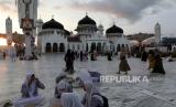 REPUBLIKA.CO.ID,BANDA ACEH -- Umat Islam menunggu waktu berbuka puasa di Masjid Raya Baiturrahman, Banda Aceh, Senin (10/4/2023).
