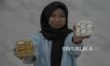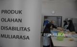 Siswa penyandang disabilitas menunjukkan kue kering lebaran di Pusat Pelayanan Sosial (Pusyansos) Griya Harapan Difabel Dinas Sosial Provinsi Jawa Barat, Kota Cimahi, Jawa Barat, Rabu (12/4/2023). (FOTO : ABDAN SYAKURA/REPUBLIKA)