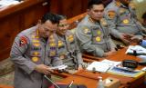 REPUBLIKA.CO.ID, JAKARTA -- Kapolri Jenderal Pol Listyo Sigit Prabowo beserta jajaran mengikuti rapat kerja dengan Komisi III DPR di kompleks Parlemen, Senayan, Jakarta, Rabu (12/4/2023).