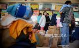 Sejumlah pemudik bersiap menaiki bus di Terminal Kampung Rambutan, Jakarta, Rabu (12/4/2023). Terminal Kampung Rambutan mulai ramai didatangi oleh pemudik tujuan Pulau Sumatera yang memilih untuk mudik lebih dahulu. Hal tersebut dikarenakan menghindari kenaikan tarif tiket bus lintas Sumatera sebesar 50 hingga 60 persen yang akan berlaku pada 14 Maret 2023 dan untuk menghindari penumpukan penumpang bus di Pelabuhan Merak saat puncak arus mudik. (FOTO : Republika/Putra M. Akbar)