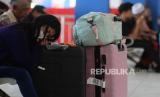 Seorang pemudik tertidur saat menunggu bus keberangkatan di Terminal Kampung Rambutan, Jakarta, Rabu (12/4/2023). Terminal Kampung Rambutan mulai ramai didatangi oleh pemudik tujuan Pulau Sumatera yang memilih untuk mudik lebih dahulu. Hal tersebut dikarenakan menghindari kenaikan tarif tiket bus lintas Sumatera sebesar 50 hingga 60 persen yang akan berlaku pada 14 Maret 2023 dan untuk menghindari penumpukan penumpang bus di Pelabuhan Merak saat puncak arus mudik. (FOTO : Republika/Putra M. Akbar)