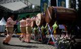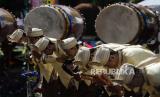 Sejumlah peserta bersiap tampil pada Festival Bedug di Kantor Wali Kota Jakarta Pusat, Jakarta, Rabu (12/4/2023). Festival Bedug untuk melestarikan budaya Betawi dan syiar Islam tersebut diikuti oleh 16 peserta dari 8 kecamatan di wilayah Jakarta Pusat, yang diselenggarakan hingga Kamis (13/4/2023). (FOTO : Republika/Putra M. Akbar)