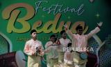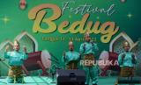 Sejumlah peserta tampil pada Festival Bedug di Kantor Wali Kota Jakarta Pusat, Jakarta, Rabu (12/4/2023). Festival Bedug untuk melestarikan budaya Betawi dan syiar Islam tersebut diikuti oleh 16 peserta dari 8 kecamatan di wilayah Jakarta Pusat, yang diselenggarakan hingga Kamis (13/4/2023). (FOTO : Republika/Putra M. Akbar)