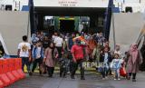 REPUBLIKA.CO.ID,BANDA ACEH -- Penumpang berjalan turun dari kapal ferry saat tiba di Pelabuhan Penyeberangan Ulee Lheu, Banda Aceh, Aceh, Rabu (12/4/2023).