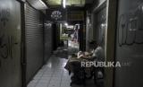 Penjahit tidur di kiosnya di Pasar Kosambi, Kota Bandung, Jawa Barat, Kamis (13/4/2023). (FOTO : ABDAN SYAKURA/REPUBLIKA)