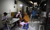 Sejumlah penjahit menjahit pakaian pesanan pelanggan di Pasar Kosambi, Kota Bandung, Jawa Barat, Kamis (13/4/2023). (FOTO : ABDAN SYAKURA/REPUBLIKA)