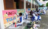 REPUBLIKA.CO.ID, SOLO -- Siswa membuat sketsa dan mural di SMP Negeri 25 Solo, Jawa Tengah, Kamis (13/4/2023).