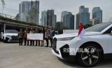 REPUBLIKA.CO.ID,JAKARTA -- Mobil BMW iX terlihat saat acara serah terima mobil resmi KTT ASEAN di Jakarta, Kamis (13/4/2023).