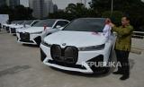Mobil BMW iX terlihat saat acara serah terima mobil resmi KTT ASEAN di Jakarta, Kamis (13/4/2023). BMW menyerahkan 13 kendaraan listrik premium BMW iX kepada Kemensetneg untuk digunakan oleh presiden maupun perdana menteri negara peserta KTT ASEAN ke-42 di Labuan Bajo, NTT, 9-11 Mei 2023. (FOTO : Republika/Edwin Dwi Putranto)
